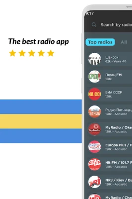 The ideal radio player to listen live and free to the best music, online radio, FM radio and AM radio from Ukraine!
